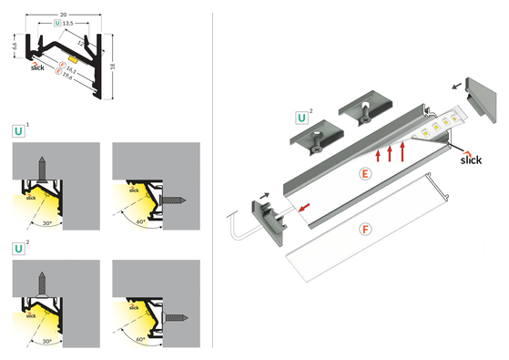 LED profile CORNER12.v2 EF/U 4050 raw alu.